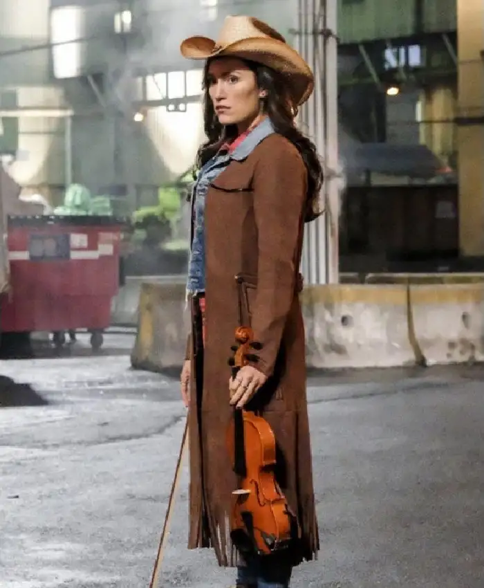 Miranda MacDougall The Flash S04 Brown Suede Leather Coat For Women
