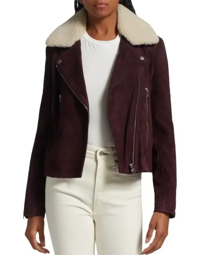 Grace Gordon The Girls On The Bus 2024 Carla Gugino Suede Shearling Jacket