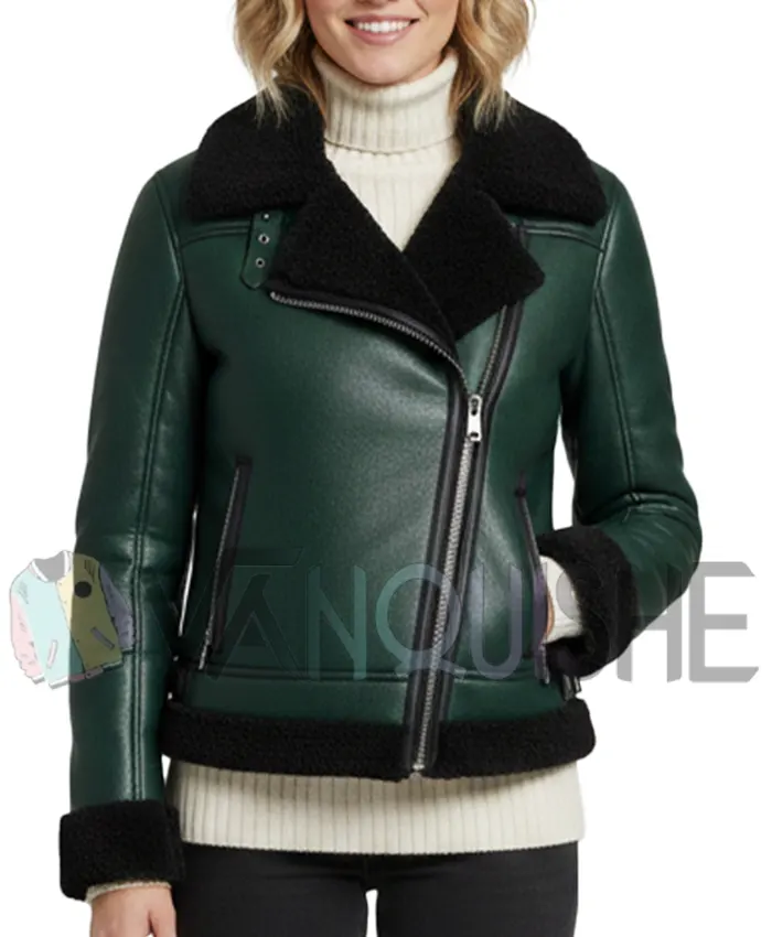 Upgrade Your Style with the Green Shearling-Lined Biker Jacket