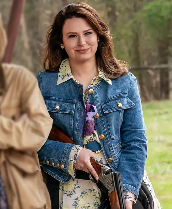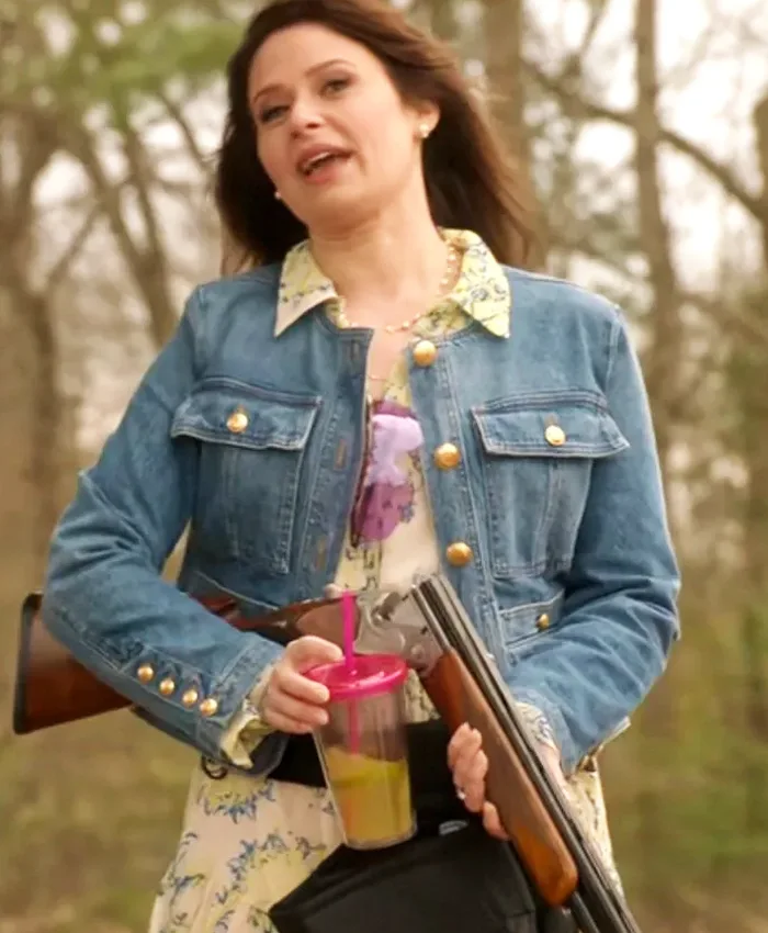Katie Lowes TV-Series The Hunting Wives 2025 Jill Blue Denim Jacket