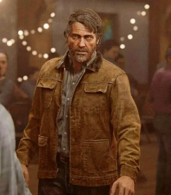 Troy Baker Video Game The Last of Us Part 2 Joel Miller Brown Suede Leather Jacket