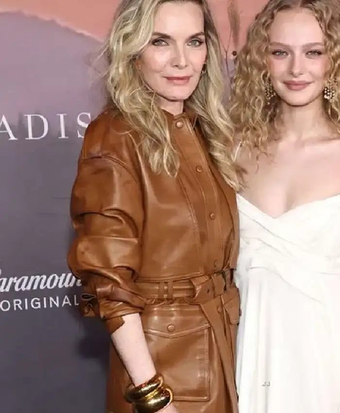 Michelle Pfeiffer The Madison Premiere Night 2026 Brown Leather Jacket On Sale For Women