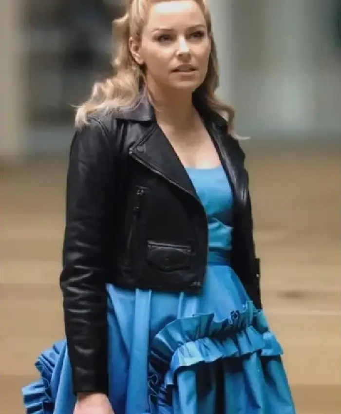 Buy Elizabeth Banks The Miniature Wife 2026 Black Cropped Biker Leather Jacket For Men and Women