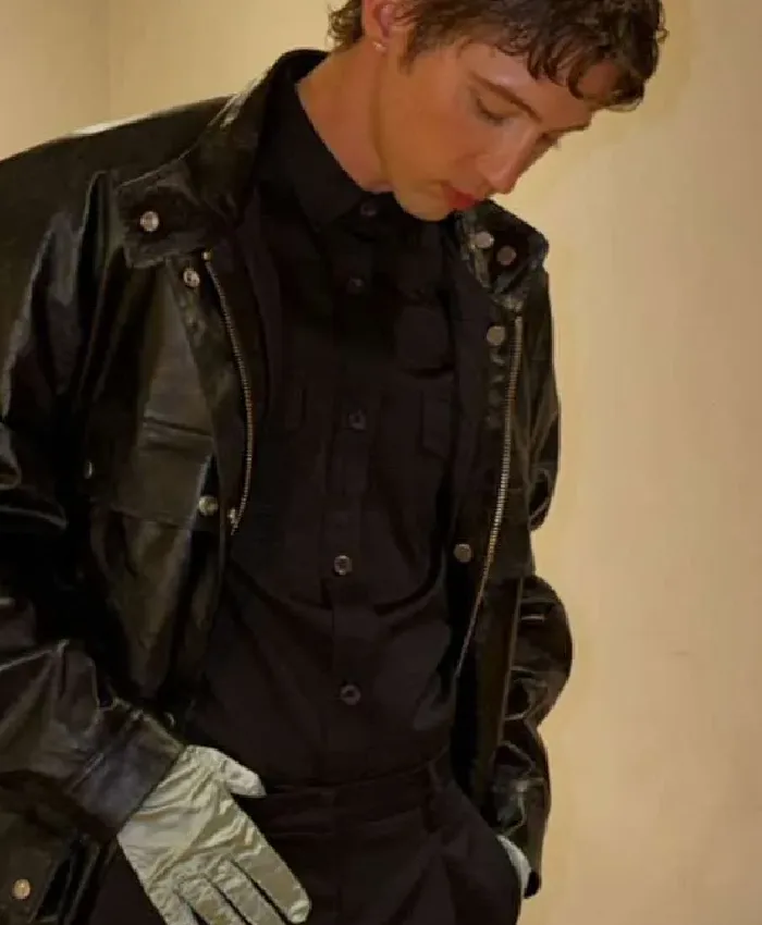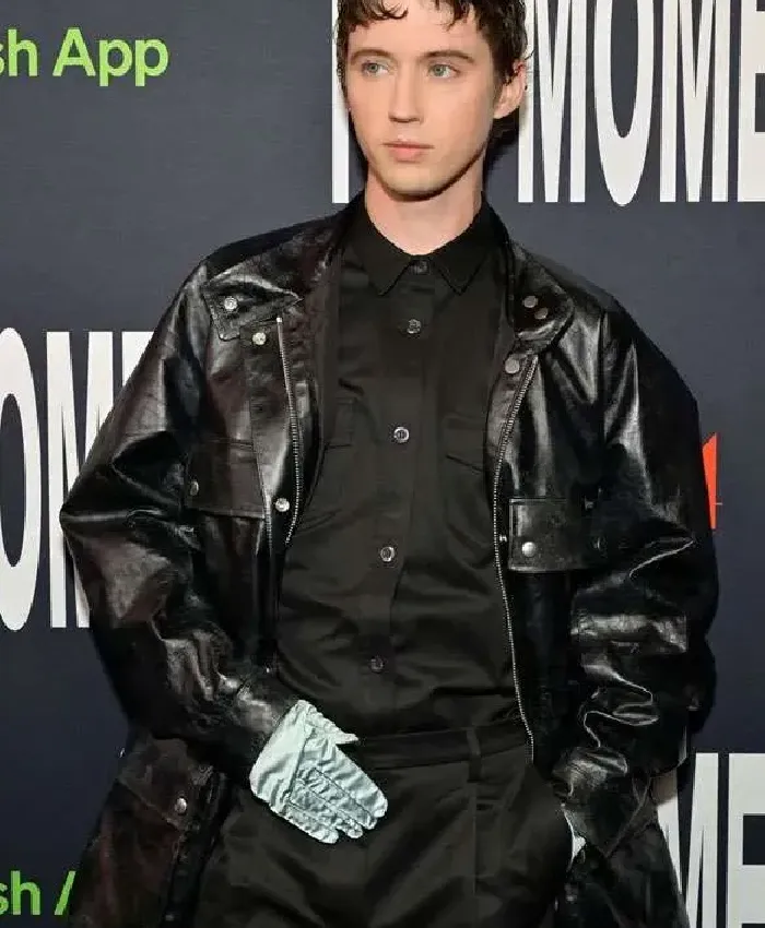 Troye Sivan The Moment 2026 Premiere Night Black Leather Jacket For Men