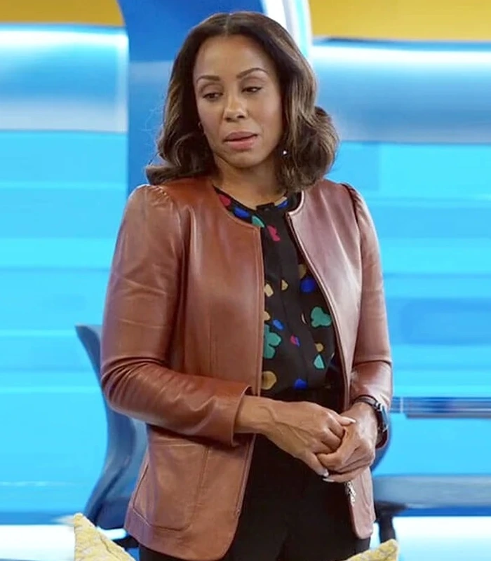 Karen Pittman TV-Series The Morning Show 2025 Mia Jordan Brown Leather Jacket