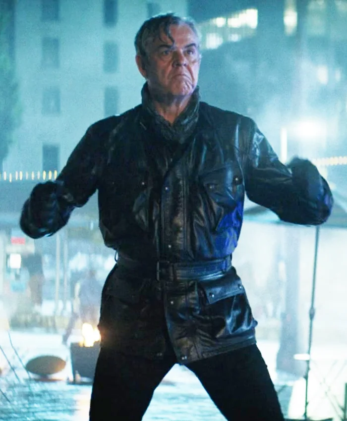 Danny Huston Movie The Naked Gun 2025 Richard Cane Black Leather Jacket