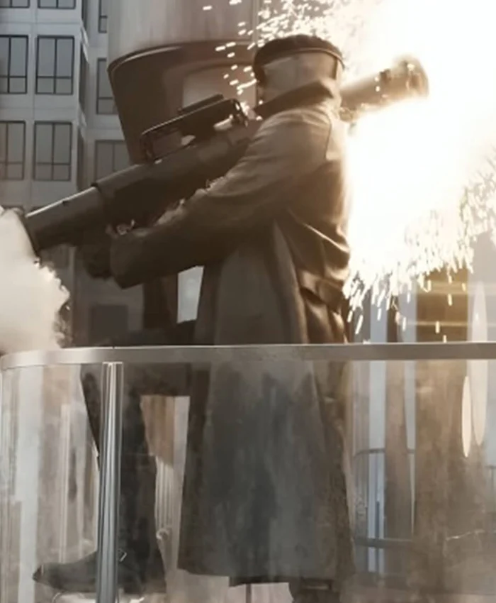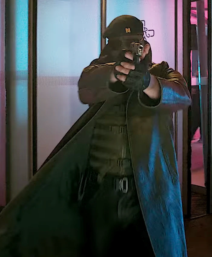 Lee Pace Movie The Running Man 2025 Evan McCone Black Leather Coat
