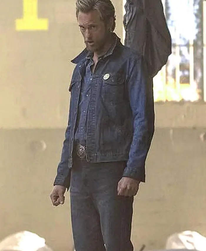 Alexander Skarsgard The Stand Randall Flagg Blue Denim Trucker Jacket For Men