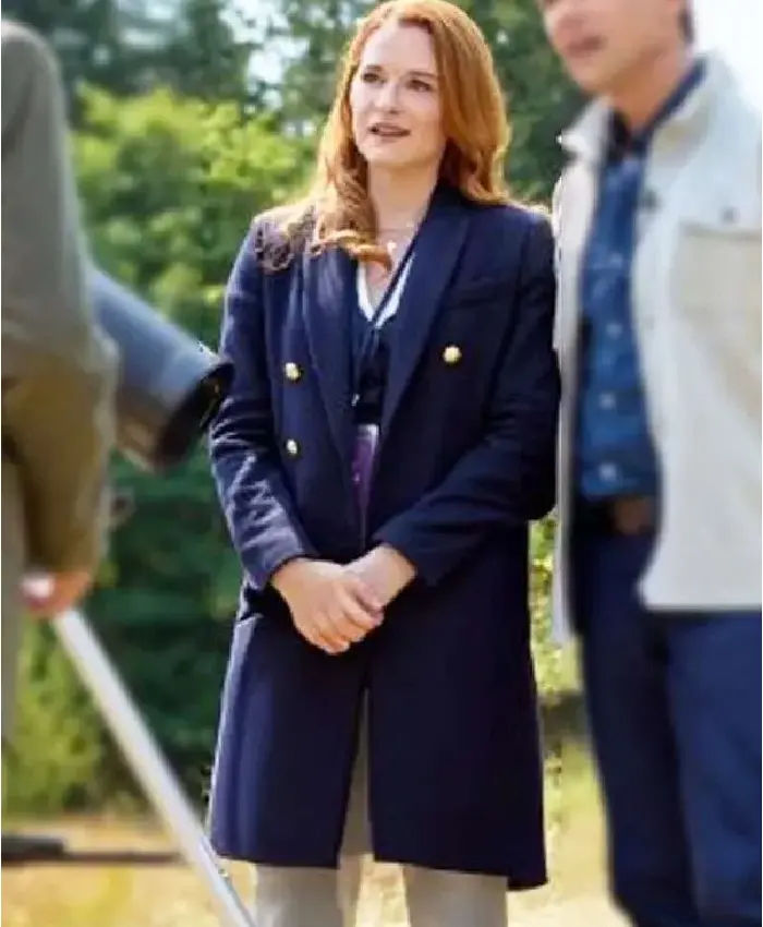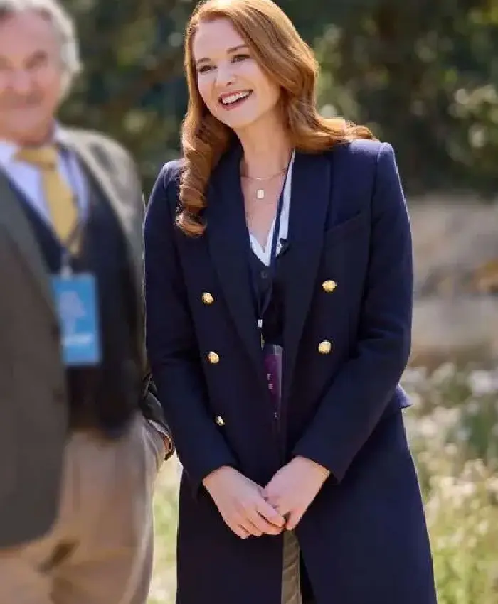 Sarah Drew The Stars Between Us 2026 Kim Blue Wool Trench Coat For Women