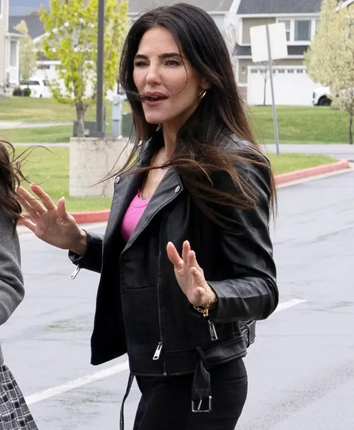 Rebekah Graf Movie The Stranger in My Home 2025 Natasha Bridge Black Leather Jacket