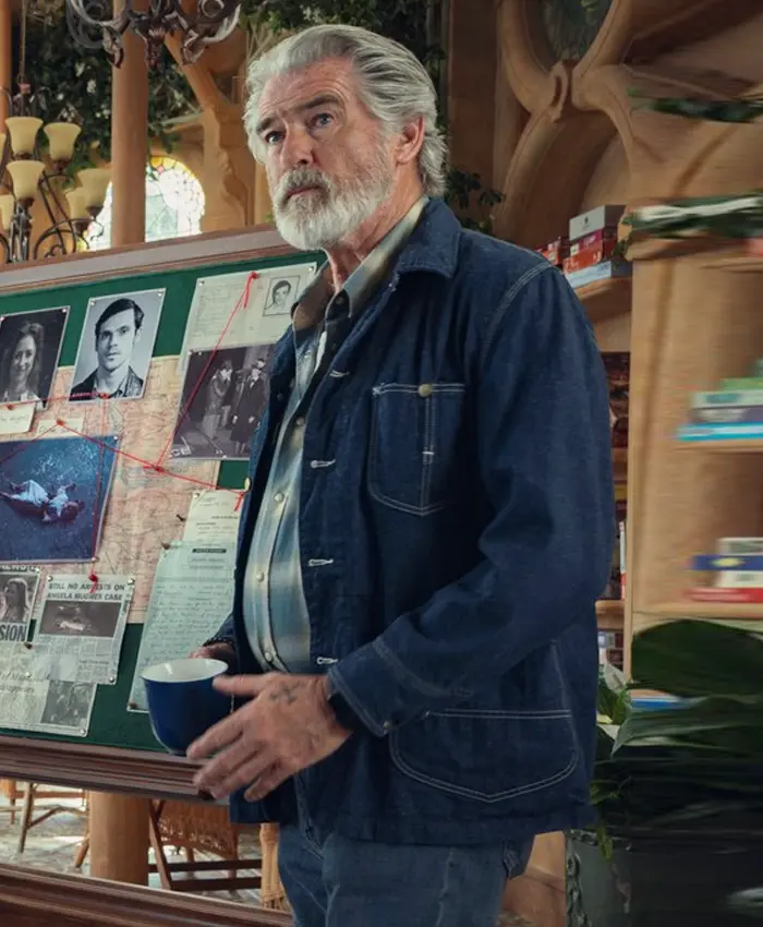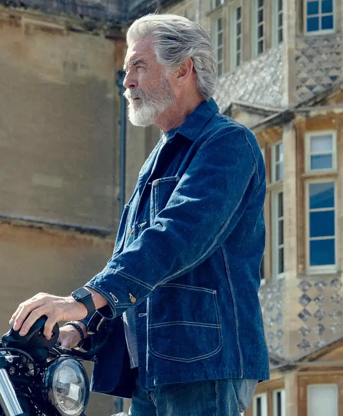 Pierce Brosnan Movie The Thursday Murder Club 2025 Ron Blue Denim Jacket