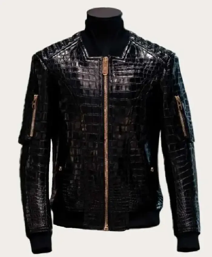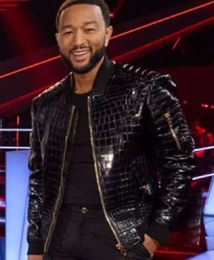 John Legend The Voice Crocodile Black Bomber Leather Jacket For Men