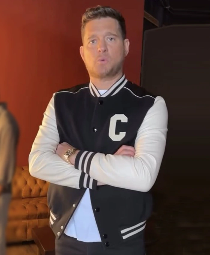 Michael Buble The Voice 2025 Black C Teddy Varsity Jacket