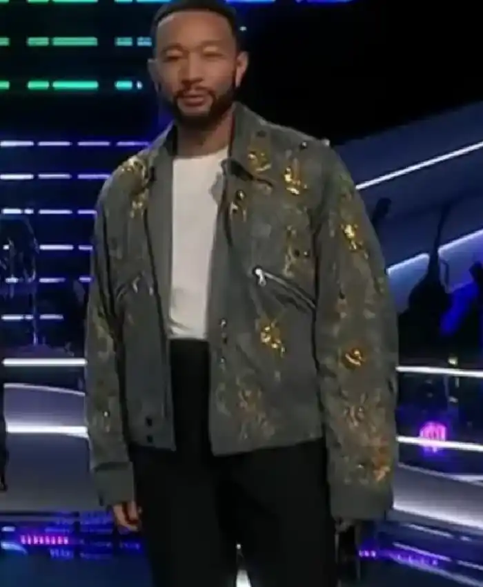 John Legend The Voice 2026 Grey Embellished Jacket For Men