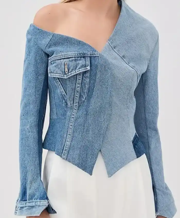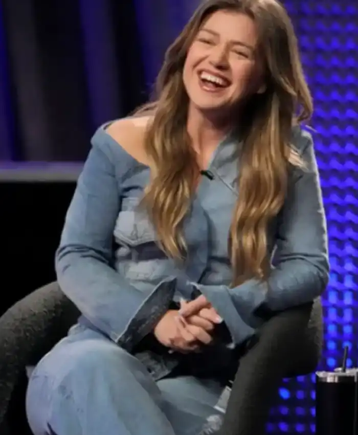 Kelly Clarkson TV Show The Voice 2026 Blue Asymmetric Denim Jacket For Women Shop Now
