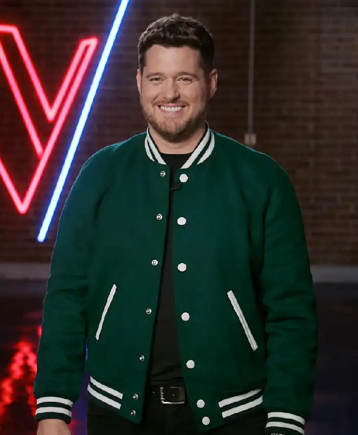 The Voice S29 Coach Michael Buble Green Wool Varsity Jacket For Men