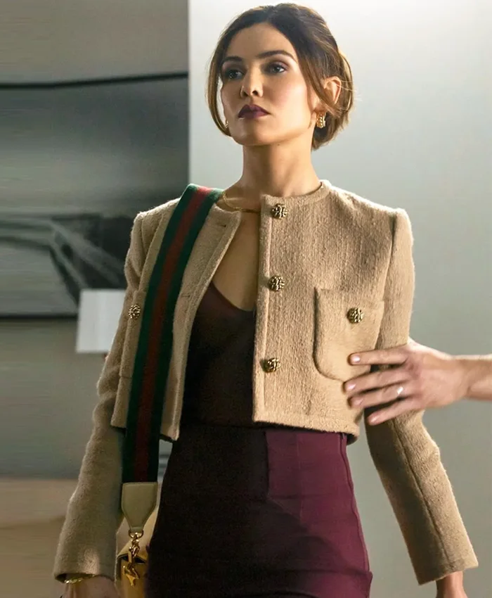 Danielle Campbell TV-Series The Waterfront 2025 Peyton Buckley Brown Cropped Jacket