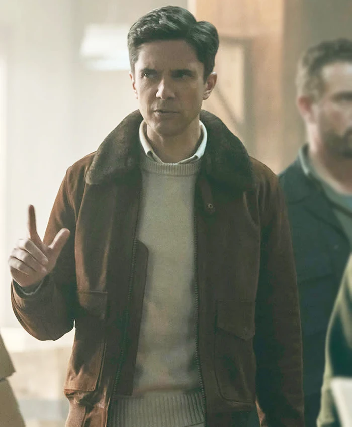 Topher Grace TV-Series The Waterfront 2025 Grady Brown Shearling Leather Jacket