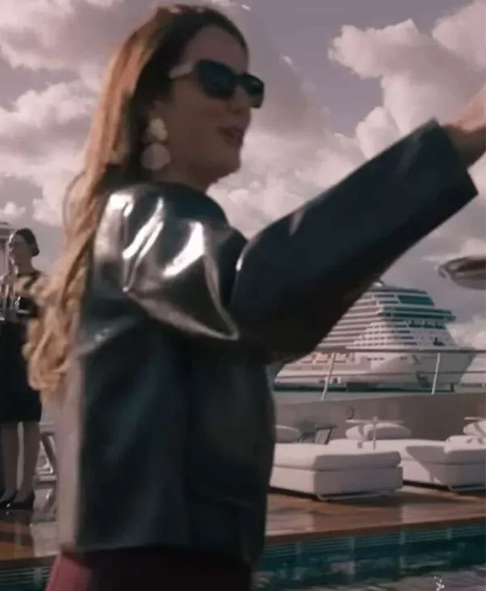 Kaya Scodelario Movie The Woman in Cabin 10 2025 Black Leather Jacket