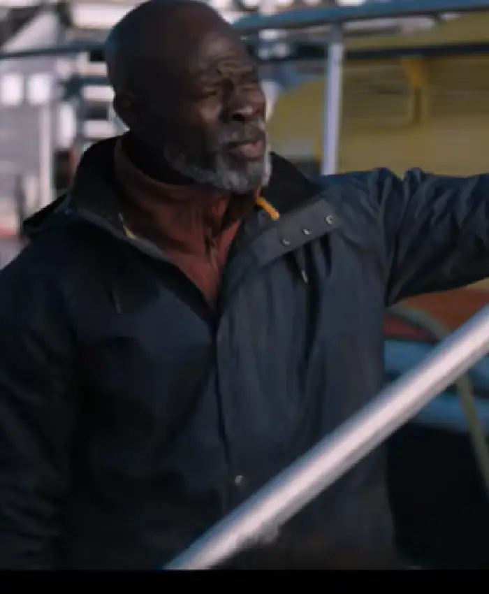 Djimon Hounsou Movie Thrash 2026 Navy Blue Parka Coat On Sale For Men