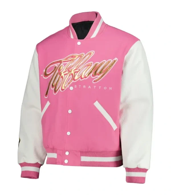 WWE Tiffany Stratton 2025 Tiffy Time Pink and White Varsity Jacket