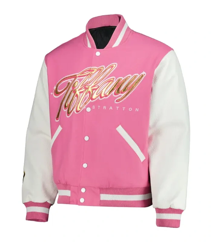 The attractive sheen of pink, when combined with the subtle white shade, gives it a soothing look. Style it with jeans or white pants, or layer it over a white t-shirt; the ensemble gives you versatility in styling. Feel free to style it as you wish to achieve the captivating look of Tiffany Stratton; purchase it today! From the Celebrity Star Jackets collection.