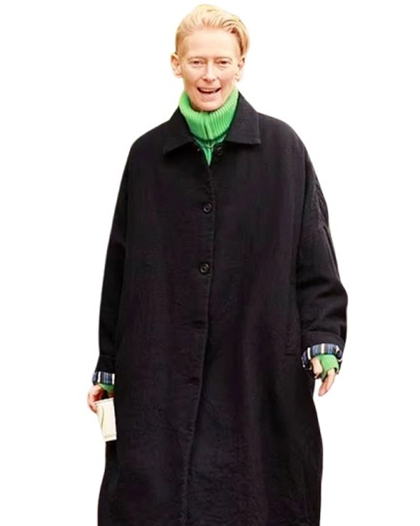 Martha Movie The Room Next Door 2024 Tilda Swinton Black Cotton Long Coat