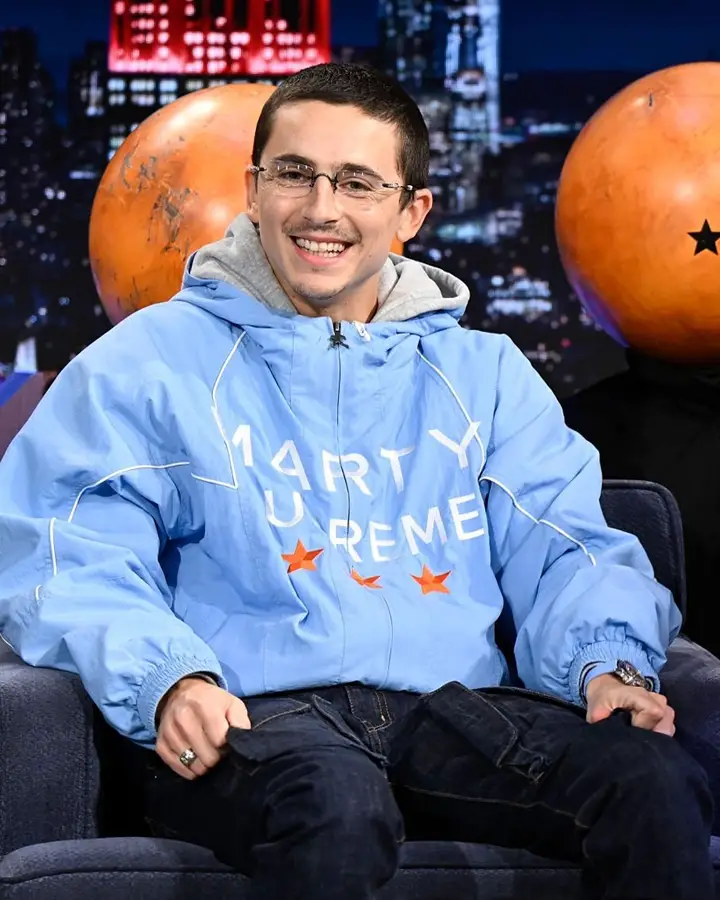 Buy The Tonight Show Starring Jimmy Fallon Timothée Chalamet Light Blue Marty Supreme Jacket