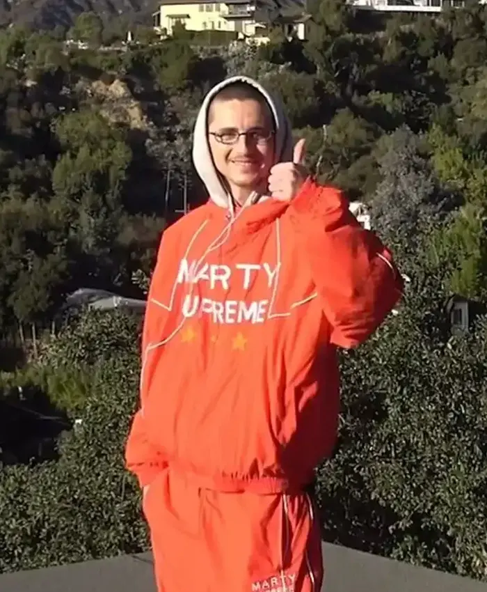 Timothée Chalamet’s Orange Marty Supreme Track Suit is ready to deliver a vibrant appeal, and because it is made in orange, the jacket has ultimately become a focal point. Put the Orange Marty Supreme Jacket over a simple tee and boots with the same color trousers, and channel the attractive appeal everyone got attracted to. Or you can style it casually with jeans or black pants if you want to pair it with dark-toned ensembles. In this attire, you will get a Timothée vibe stitched into every seam. Purchase it right now! From the Celebrity Star Jackets collection.