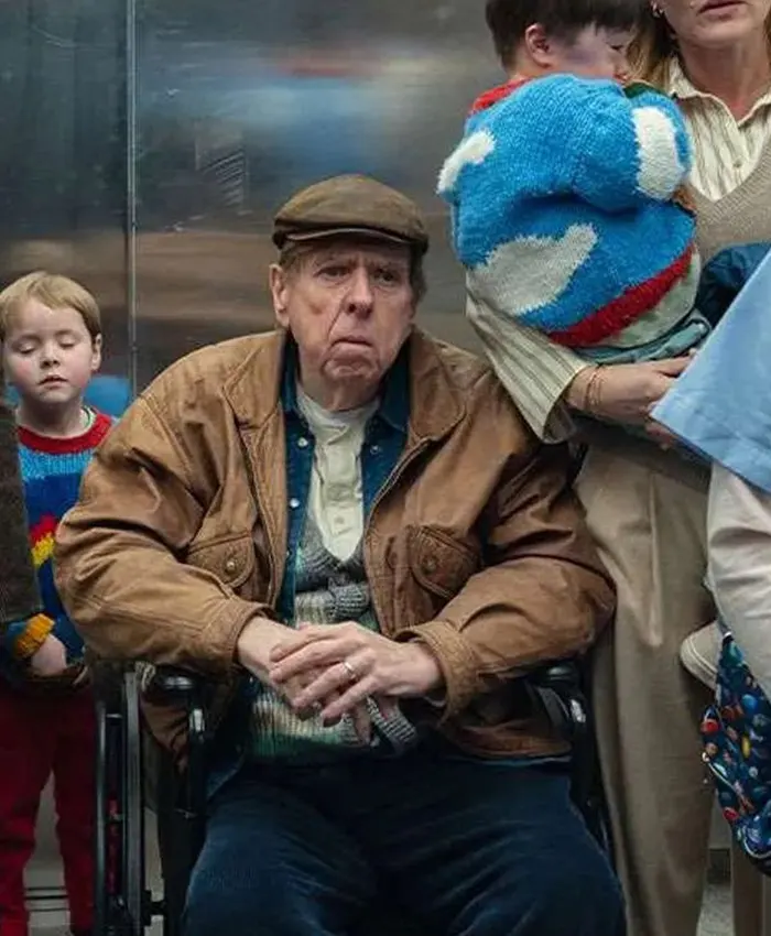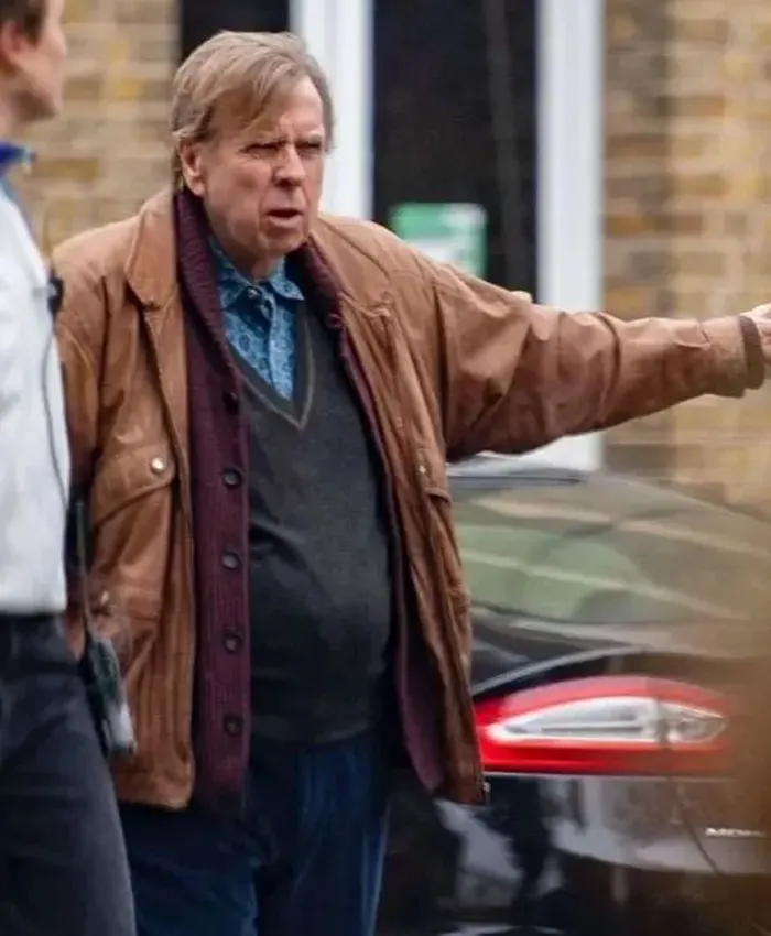 Bring Timothy Spall’s Goodbye June Resolve to Life with This Brown Leather Jacket