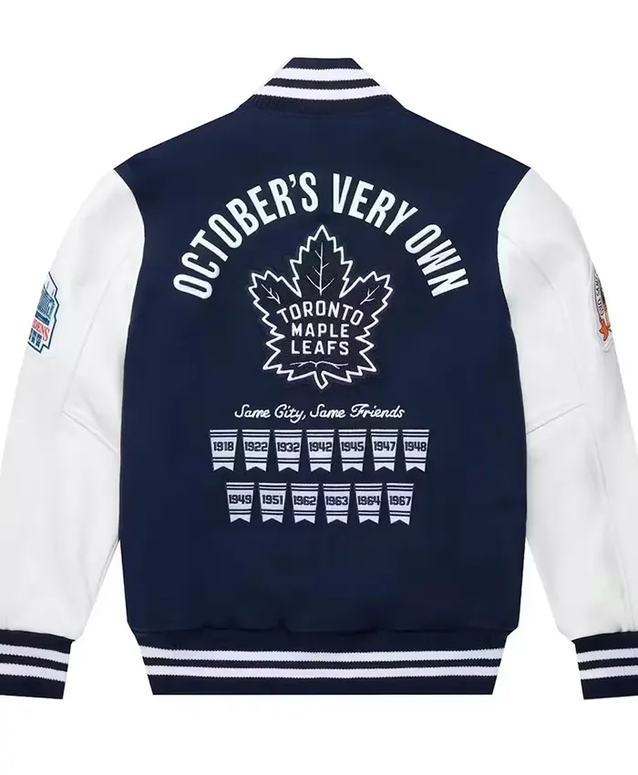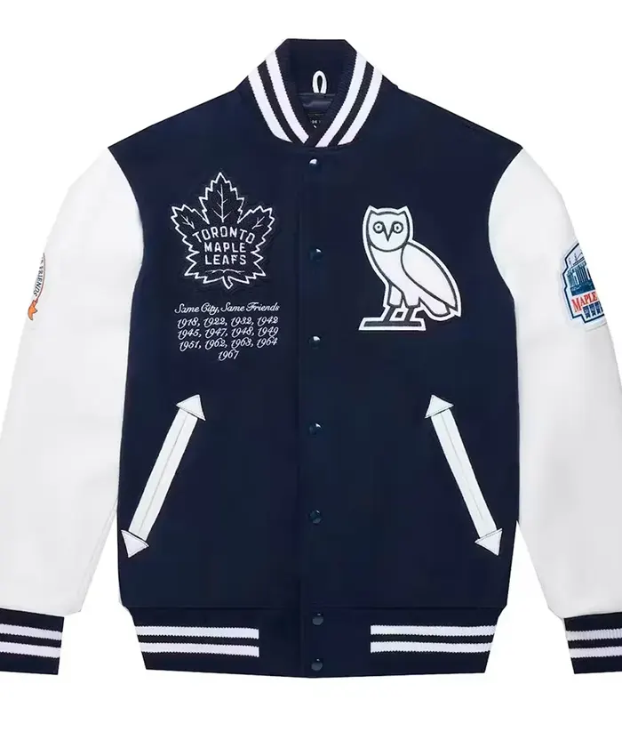 Toronto Maple Leafs OVO Black and White Varsity Jacket For Men and Women