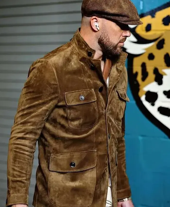 Shop Travis Kelce Brown Color Suede Leather Military Jacket