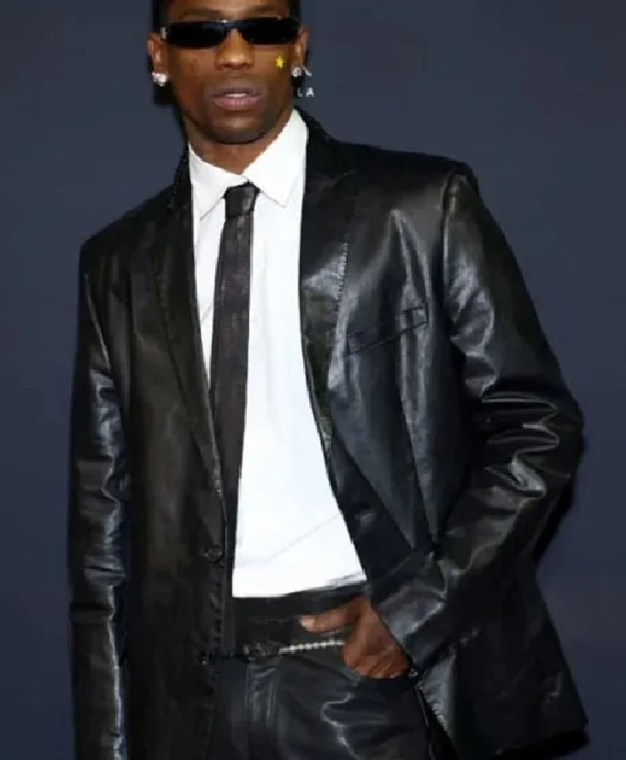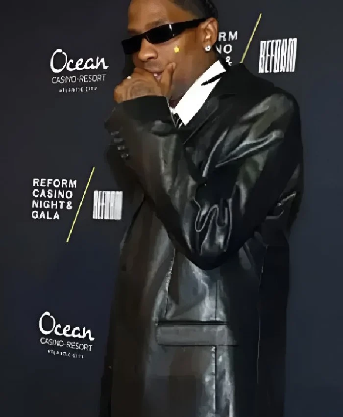 REFORM Alliance Casino Night Event Travis Scott Black Leather Blazer For Men