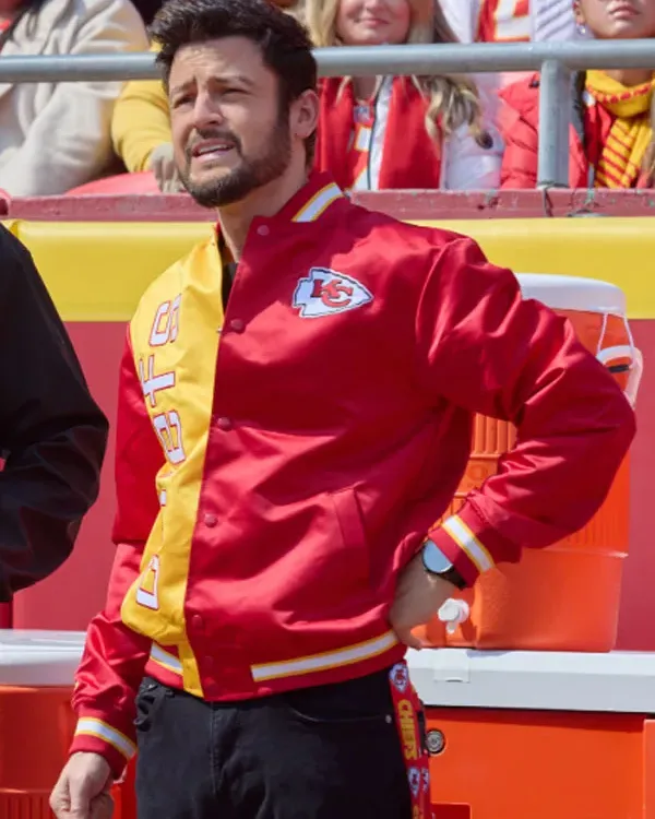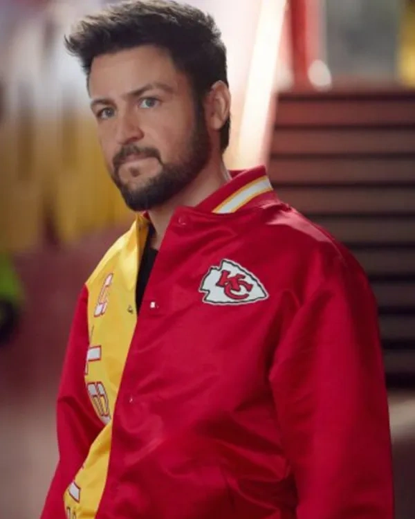 Derrick Tv Movie Holiday Touchdown: A Chiefs Love Story 2024 Tyler Hynes Red and Yellow Varsity Bomber Jacket