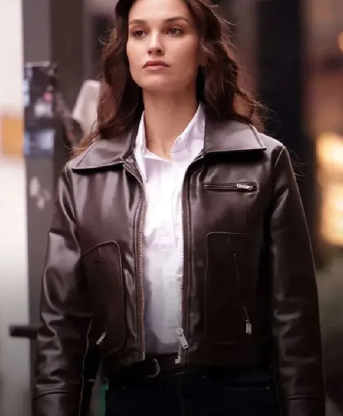Ekin Aksoy Underground TV Series 2026 Komiser Pinar Esen Brown Leather Jacket For Women