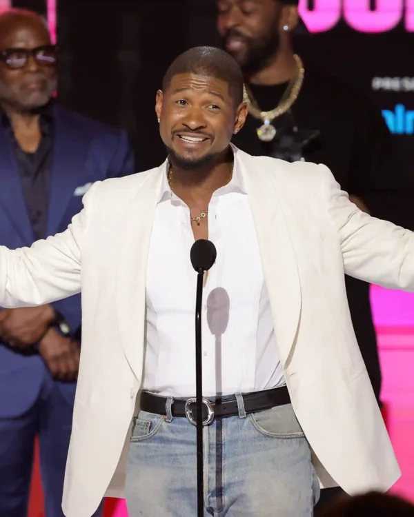 This Usher’s BET Awards 2024 coat is a highly adaptable piece of clothing and can be styled with tailored trousers and a dress shirt for a sharp, formal look. Pair it with dark jeans and a fresh white tee to create a more comfortable yet polished look. The coat also looks well with a monochrome outfit, allowing its classic silhouette and color to make a strong impression.