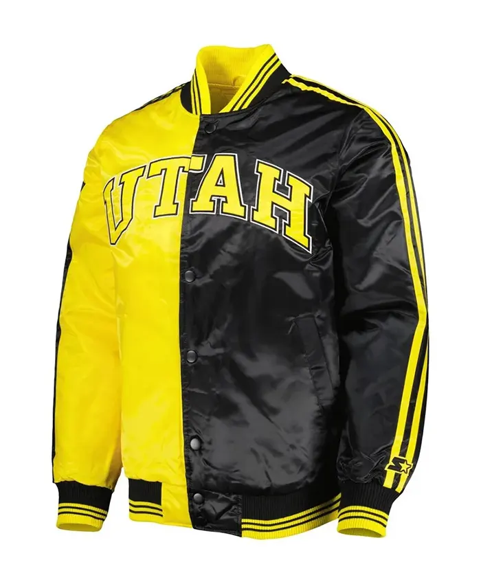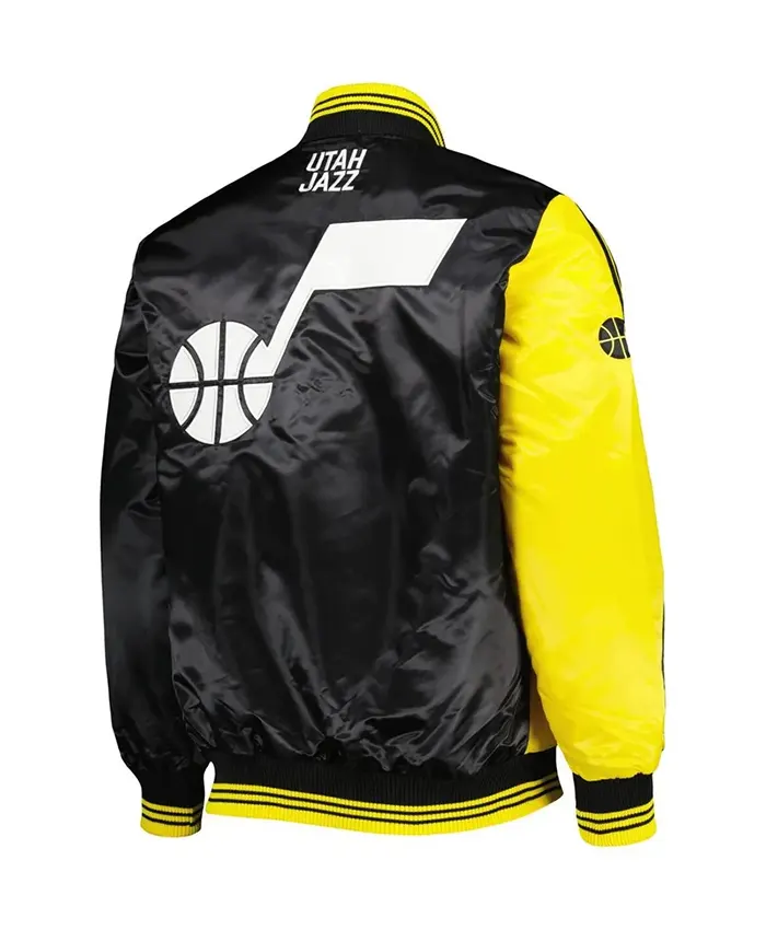 Utah Jazz Black And Yellow Bomber Full Snap Jacket For Mens and Womens on Sale
