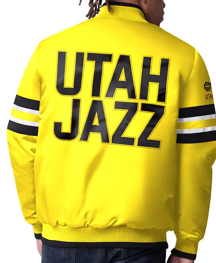 Be the first to review “Utah Jazz Yellow And Black Satin Bomber Jacket” Cancel reply