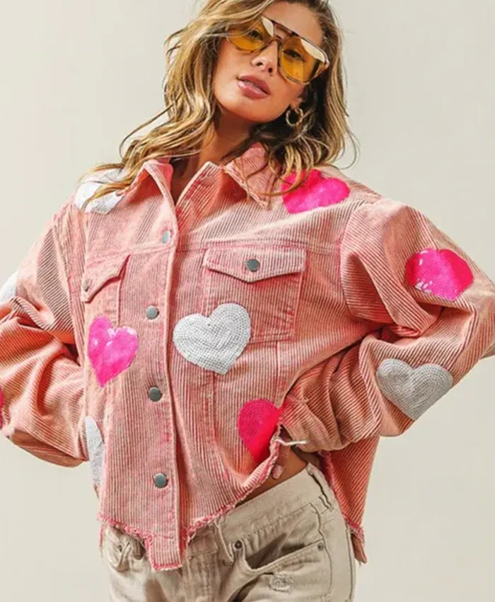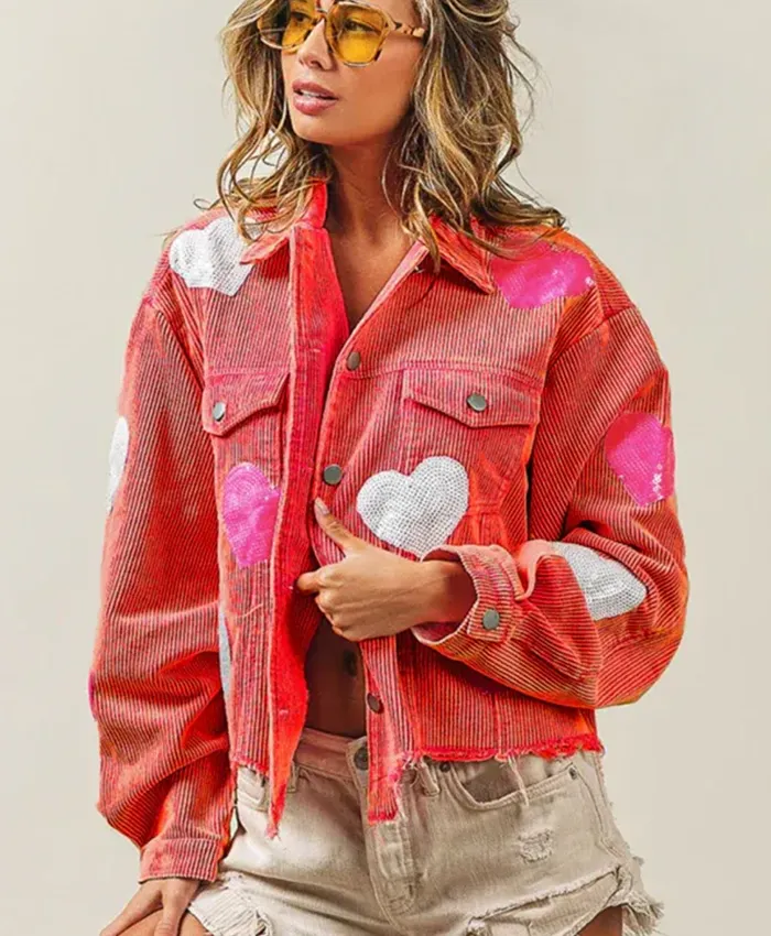 Love Sequin Valentine’s Day 2024 Series Heart Sequin Jacket For Womens