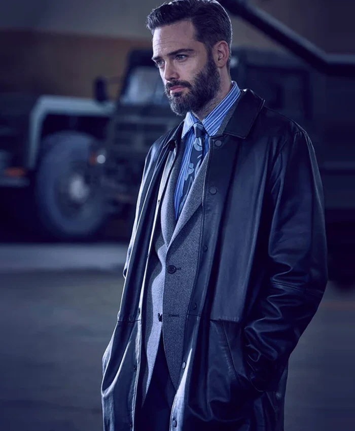 Ever wanted to look like someone who always gets to the bottom of things? Joe Ashworth from Vera Season 14 sure knows how to do that. And what’s the secret behind his sharp, no-nonsense look? This black leather coat! It’s the kind of coat that makes people turn their heads and think, “Wow, that person means business.” But don’t worry, it’s not just about looking serious—it’s also as comfy as a warm hug on a cold day.