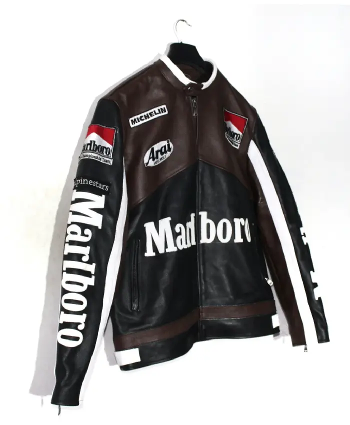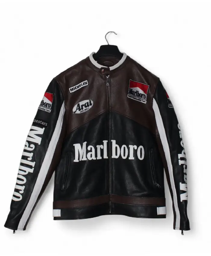 The Vintage Marlboro Brown and Black Jacket brings that classic racing vibe into a stylish everyday look. In addition, it is crafted from real leather, which makes it robust. Furthermore, the jacket encompasses an inner viscose lining that adds a soft plus comfortable layer.