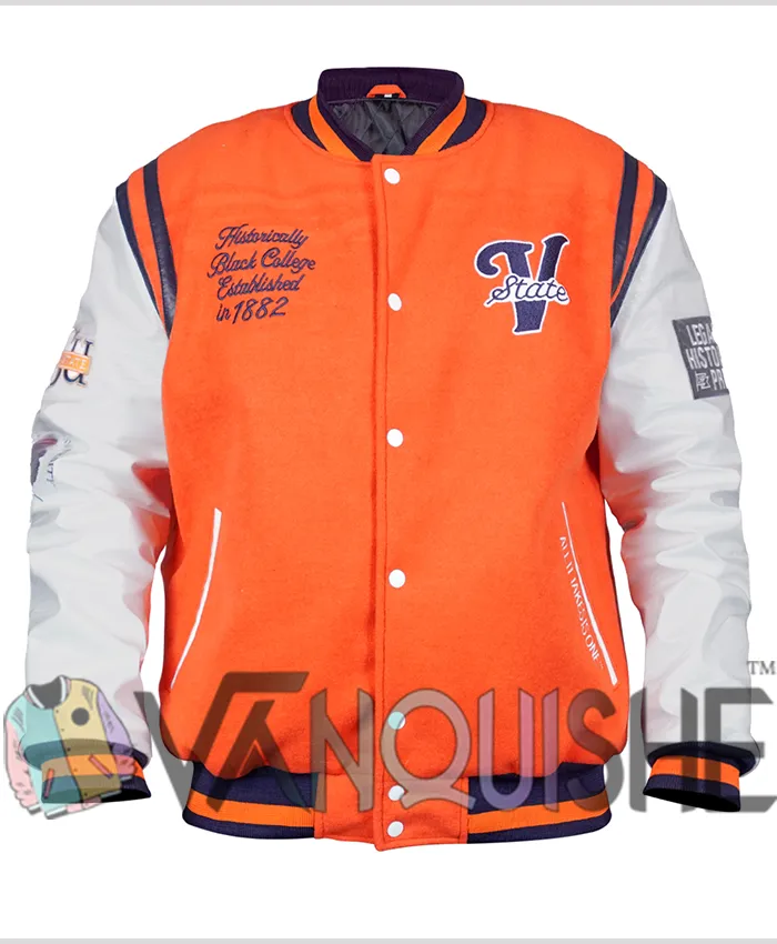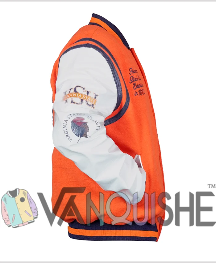 Virginia State University Motto 2.0 Orange and White Varsity Letterman Jacket For Men and Women