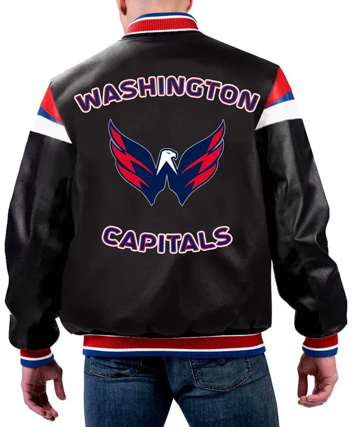 Washington Capitals Leather Bomber Zipper Jacket For Sale