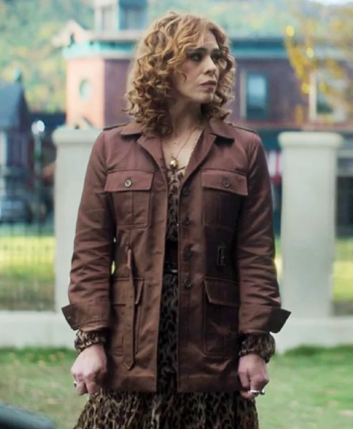 Billie Piper TV-Series Wednesday 2025 Isadora Capri Brown Satin Jacket