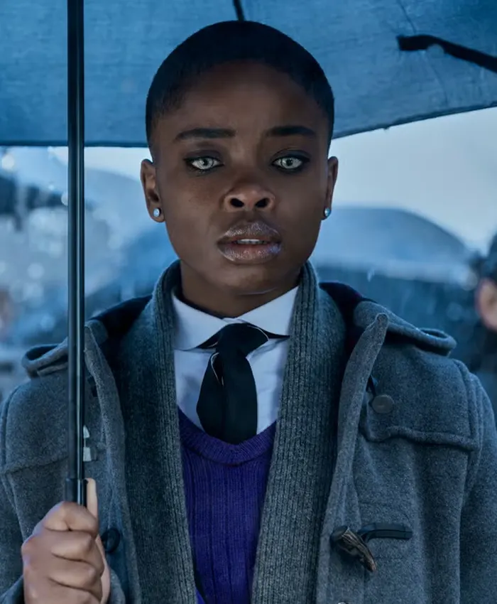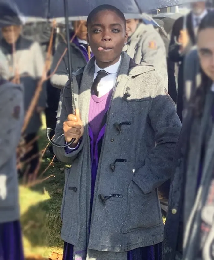 Joy Sunday TV-Series Wednesday 2025 Bianca Barclay Grey Duffle Coat