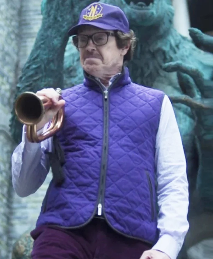 Steve Buscemi TV-Series Wednesday 2025 Principal Dort Purple Quilted Vest