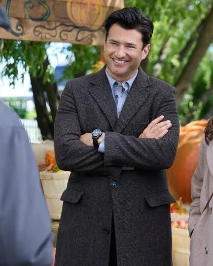 Luke Bellwhether Movie Autumn at Apple Hill 2024 Wes Brown Black Wool Coat