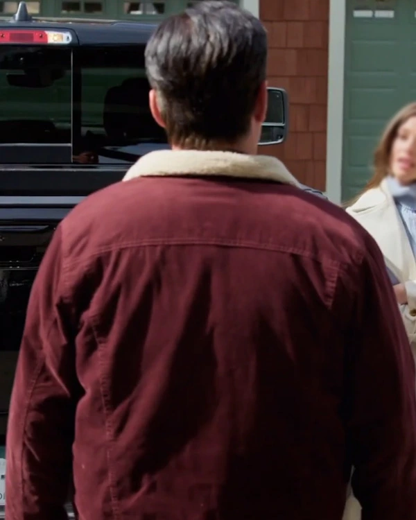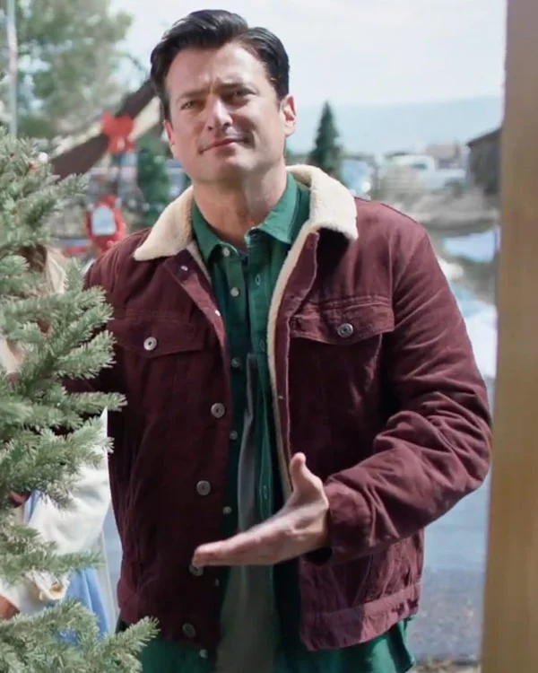 Brysen Douglas Movie Deck the Walls 2024 Wes Brown Maroon Shearling Jacket