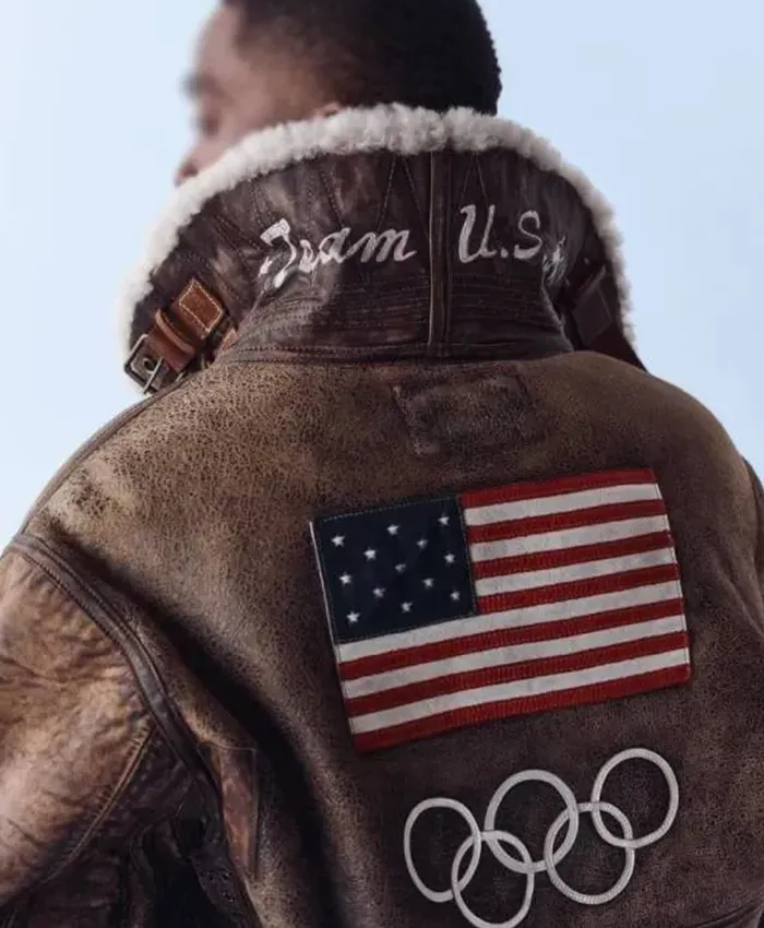 Team USA Winter Olympics 2026 Series Ralph Lauren Brown Leather Flight Jacket
