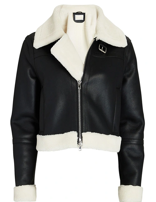 Shop Women Studio Cropped Black Shearling Leather Jacket